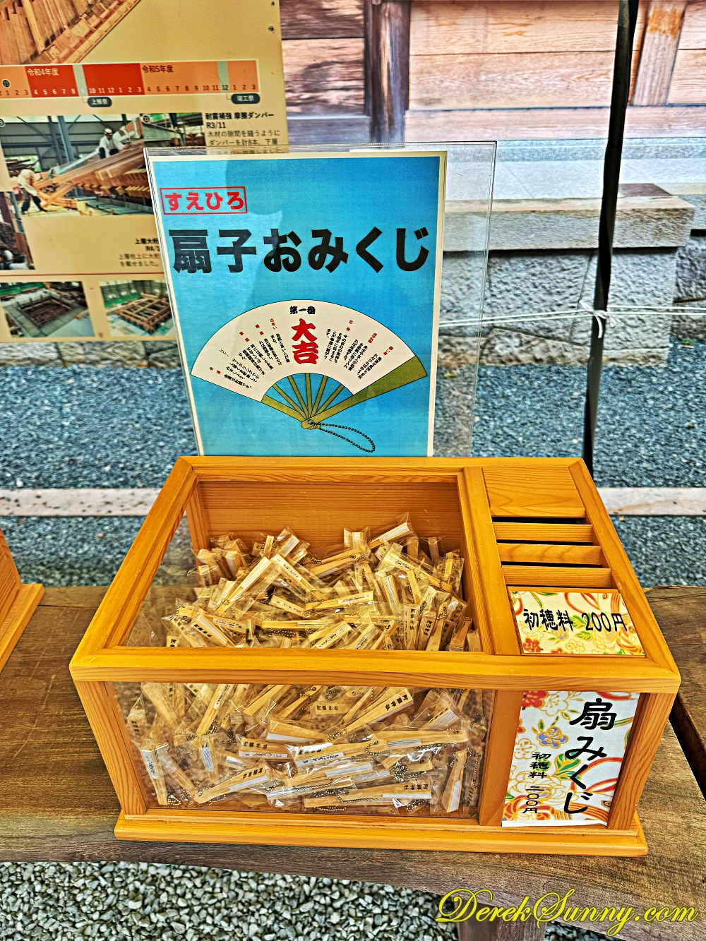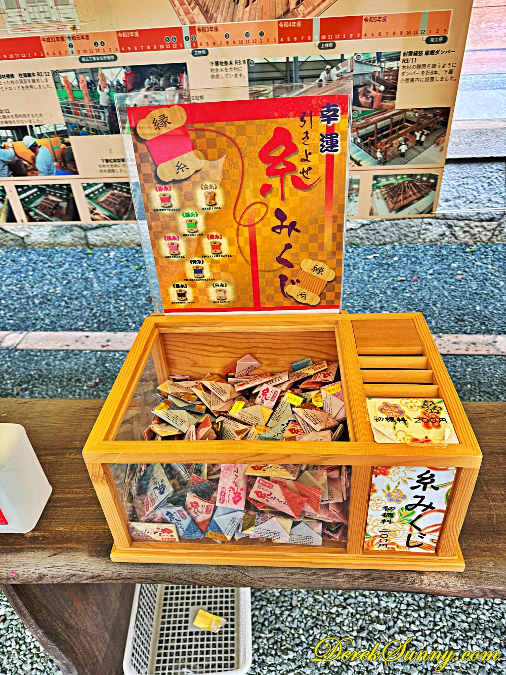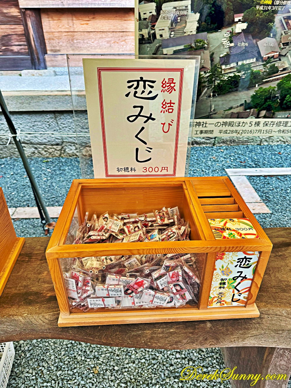 來到日本神社,怎麼能不抽籤呢?我走到籤桶前面,看著那一個個寫著「大吉」、「中吉」、「小吉」的籤詩,心裡默默許願,希望抽到好運,如果抽到好籤,記得小心收好帶回家,據說能保佑心想事成,抽到壞籤也不用太擔心,綁在神社的繩子上,壞運就會留在這裡不跟你回家,簽桶還有各種不同選擇的簽,絲線簽、扇子簽、神紋簽、戀愛簽、七福神簽及幸福簽等,很多樣化。