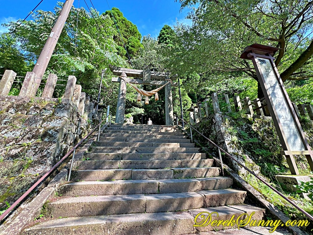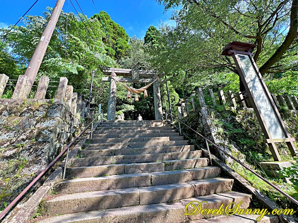 從阿蘇市區開車前往,沿著蜿蜒的山路,周圍的景色越來越原始,樹木也越來越茂密。當我把車停好,準備踏上參道時,那種感覺,就像是走進了一個被時間遺忘的空間,空氣中瀰漫著泥土和樹木的清香,周圍安靜到只剩下風吹過樹葉的聲音,那種感覺,真的超級療癒,上色見熊野座神社位於熊本阿蘇郡高森町,創建年代不詳,主祭神是伊邪那岐、伊邪那美及石見大將軍,雖然不像其他神社那麼大規模,但因為充滿螢火之森風格的石階與樹林,讓它成為攝影師與旅人的心頭好,許多人說,來到這裡不只是參拜,更像是穿越到另一個寧靜的世界,