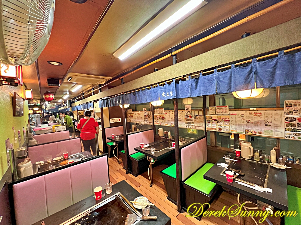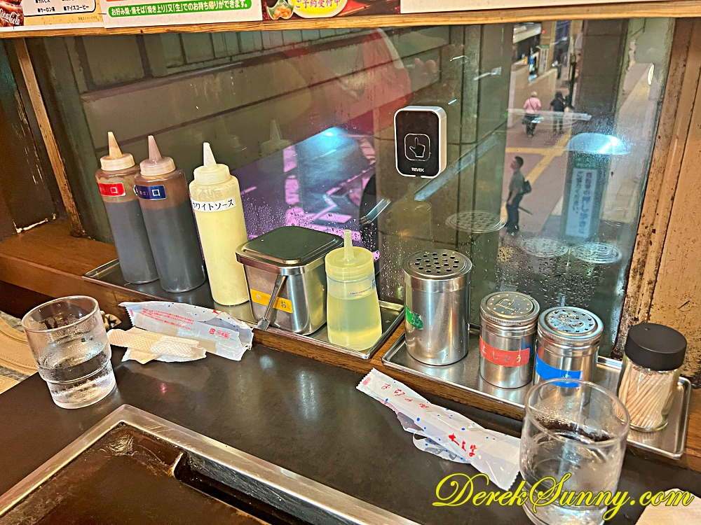 走進店裡,你會被那種老式食堂的懷舊感打到,牆上貼著泛黃的菜單,鐵板前的座位椅背直挺挺的,你可以與店員聊天或邊聽隔壁客人談青澀的戀情,環境充滿著笑聲與對話,一切都那麼自然、那麼日常,空氣裡的醬香、微焦的麵糊味、再配一杯啤酒,就是熊本的夜晚味道。