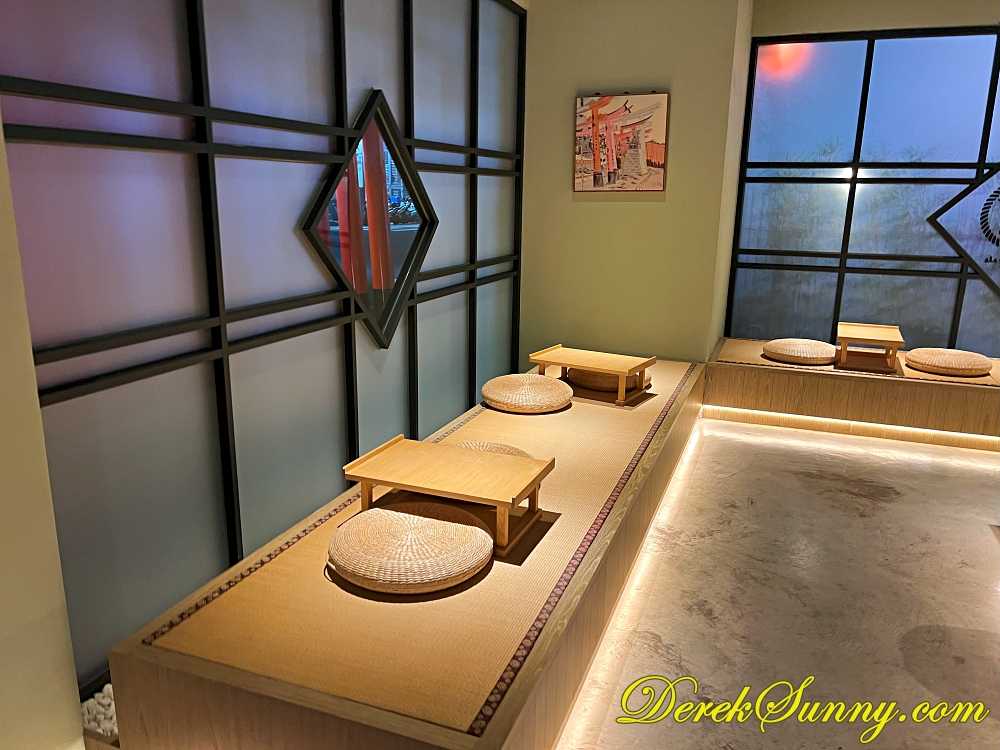 山鯨本家的裝潢延續低調日式風格,木質桌面與竹格屏風分隔出私密空間,搭配微暖黃光與牆面書法裝飾,讓整體感覺沈穩又乾淨,空氣流通設計不錯,即使整場客滿,也不太會有煙燻味黏在衣服上的問題,這點對燒肉控來說,是很加分的細節,一樓還有提供和服及面具,讓你在等待時可以換裝拍照,在日式風的穿著與環境下,拍出美美的照片。