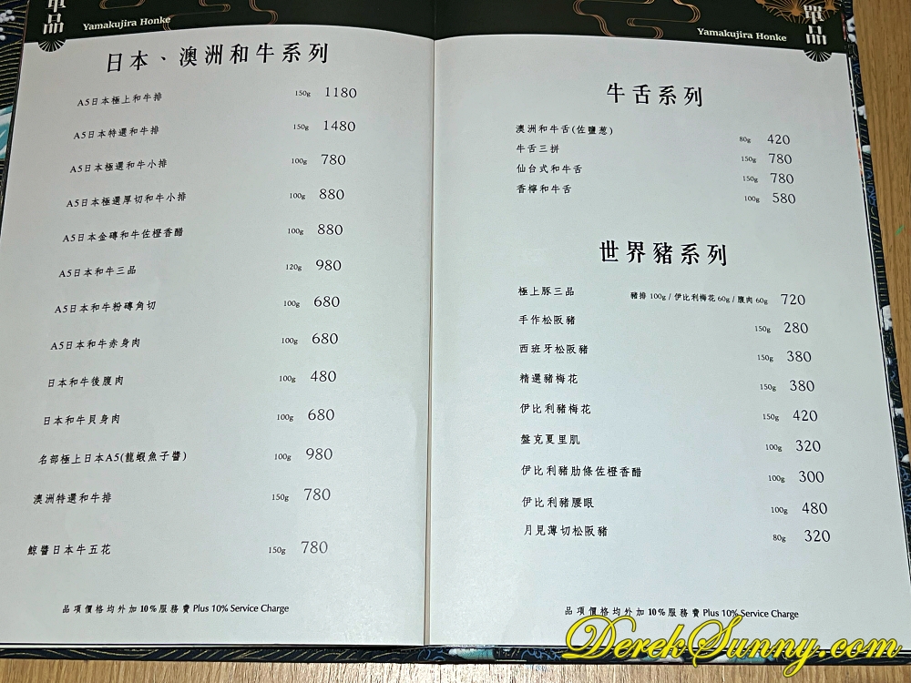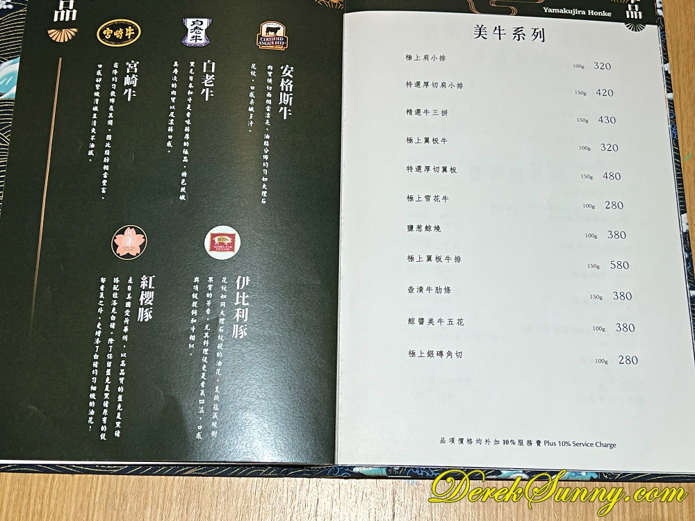 山鯨本家的餐點,主要是各個系列的套餐組合,加上單點的單品,根據個人不同的需求,可以選擇套餐或者單點,套餐是以兩人份到三人份為主,兩個人到訪的話建議是以套餐加部份單點會較為優惠,熊這次點的就是山神之膳,主要有日本A5和牛及美國牛。